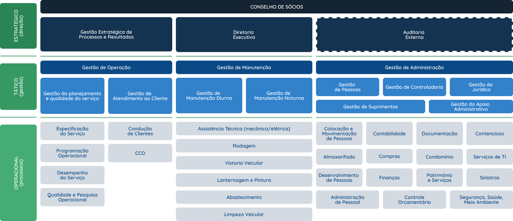 A diretoria e os núcleos de gestão atuam com metas claras, alinhamento contínuo e foco na sustentabilidade operacional. O modelo de gestão valoriza a proximidade com colaboradores, o engajamento com os órgãos públicos e a transparência com os stakeholders.